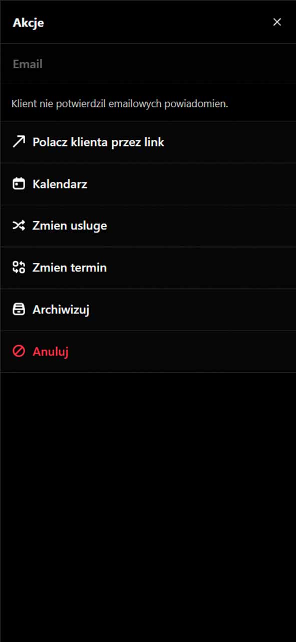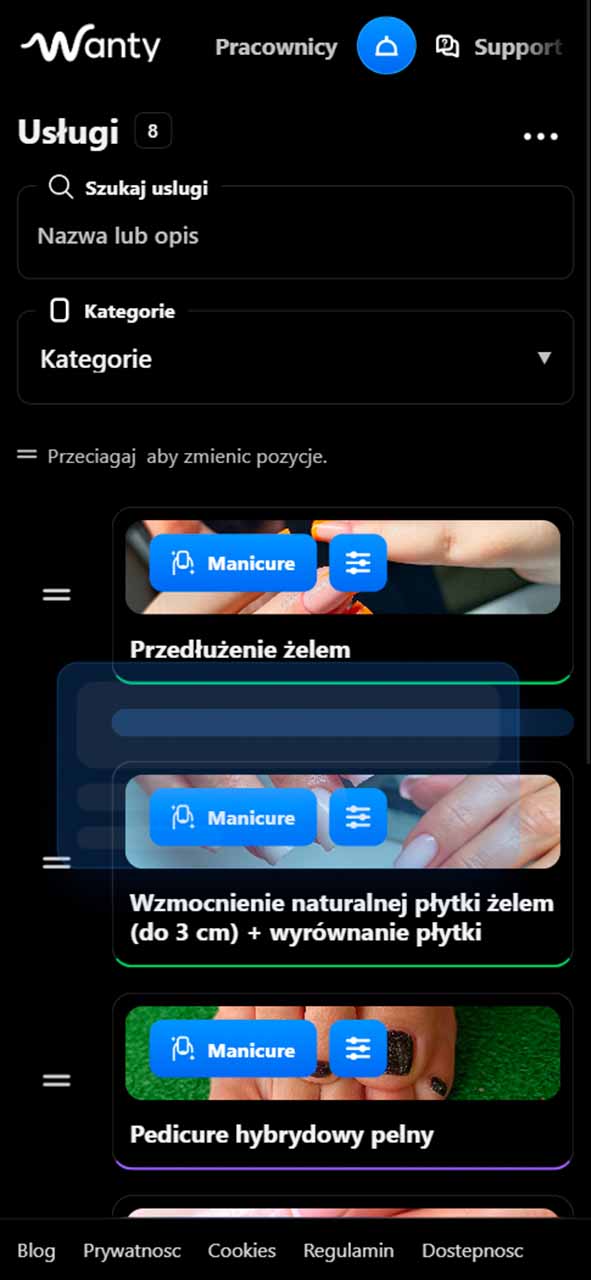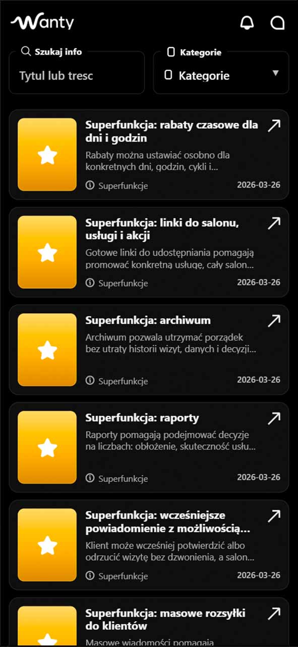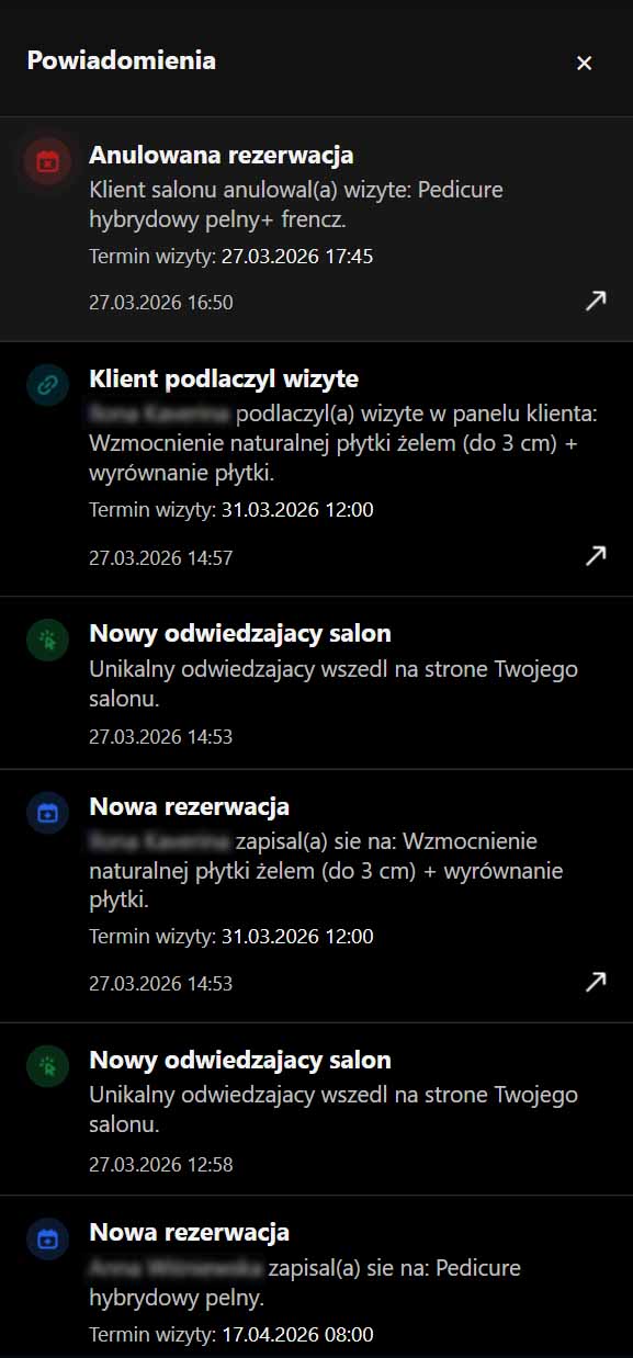 Poznaj najwazniejsze obszary platformy: rezerwacje, klientow, przypomnienia, kategorie, zespol, widocznosc salonu i narzedzia do codziennej pracy.