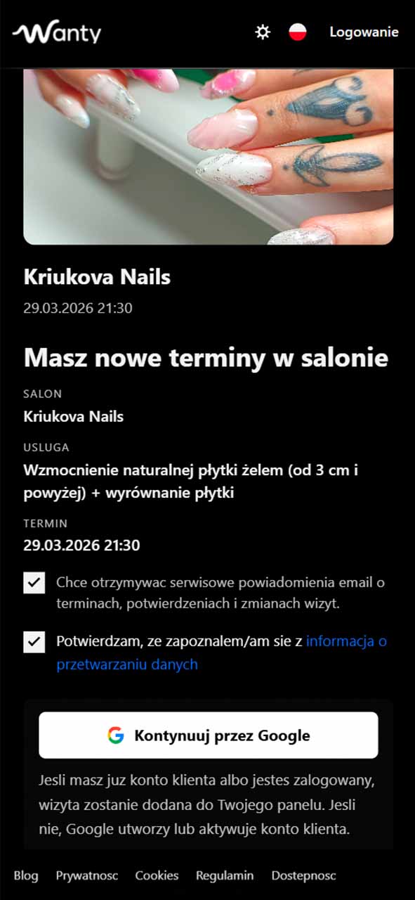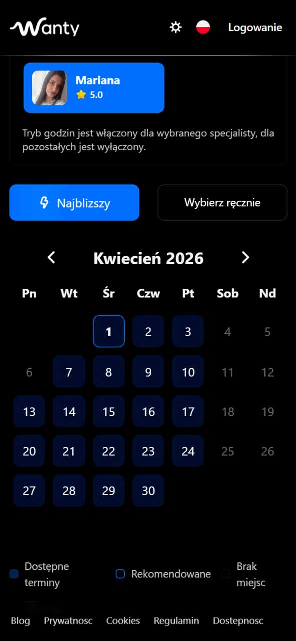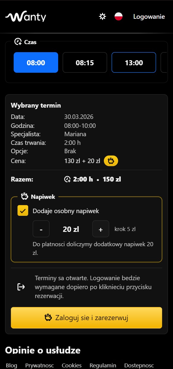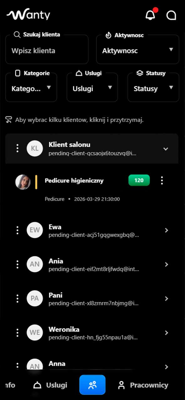 Wanty is a web platform for salons, barbershops, and beauty studios that combines online booking, schedule management, service setup, and client communication in one place.